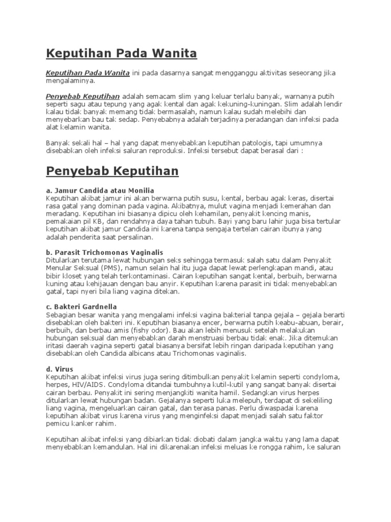 Berbagai Penyebab Keputihan Pada Wanita Yang Tak Selamanya Bahaya. Pembalut wanita atau obyek lain yang menempel pada organ intim. Ironisnya kebanyakan wanita tidak mengetahui tentang keputihan dan penyebab keputihan pada wanita itu sendiri dan malah yang menjadikan keputihan sebagai hal yang enteng.