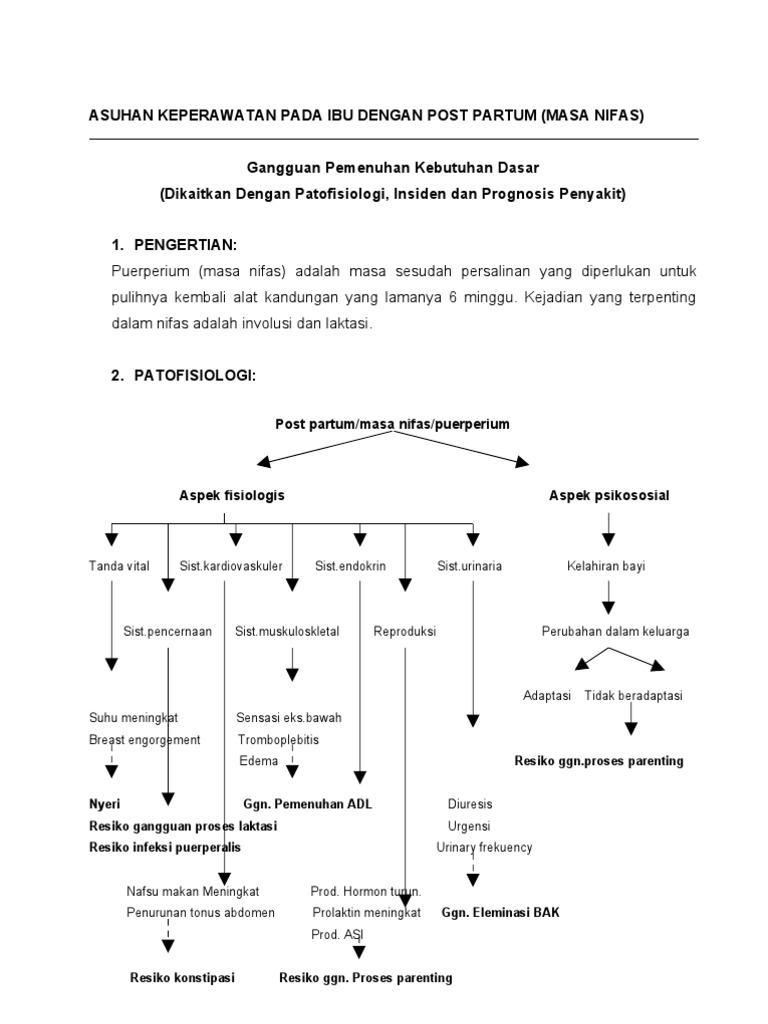 Perawatan masa nifas dimulai sejak kala uri untuk menghindari kemungkinan perdarahan post partum maupun infeksi puerpuralis. Perawatan masa nifas adalah perawatan wanita setelah selesai bersalin hingga alat-alat reproduksi kembali seperti sebelum hamil. Warnanya merah yang mengandung darah dari perobekan/luka pada plasenta dan serabut dari desi dua dan chorion. b.